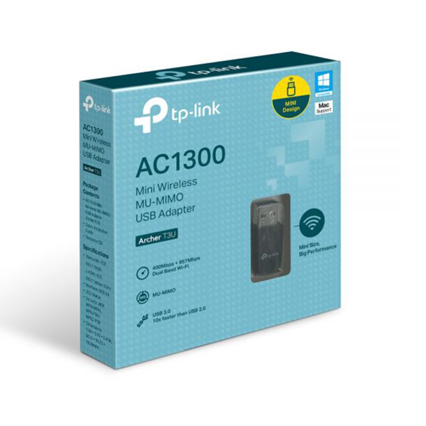 MODEL: TLT3U-ArcherAC1300 Mini Wireless MU-MIMO USB Adapter, 400 Mpbs on 2.4GHz band and 867 Mbps on 5GHz band, Supports Windows 10/8.1/8/7/XP, Mac OS X