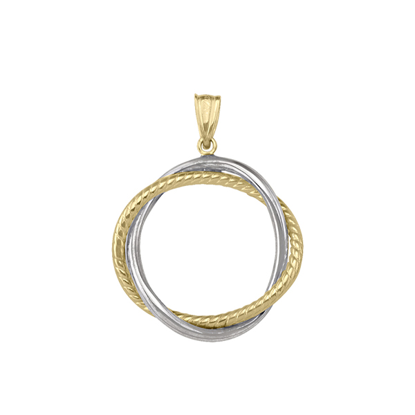 MODEL: PTECA121-10Y2T10K Dual Tone Rings Fashion Pendant with hook. Approximate weight 1.7 gm. Gift box included.