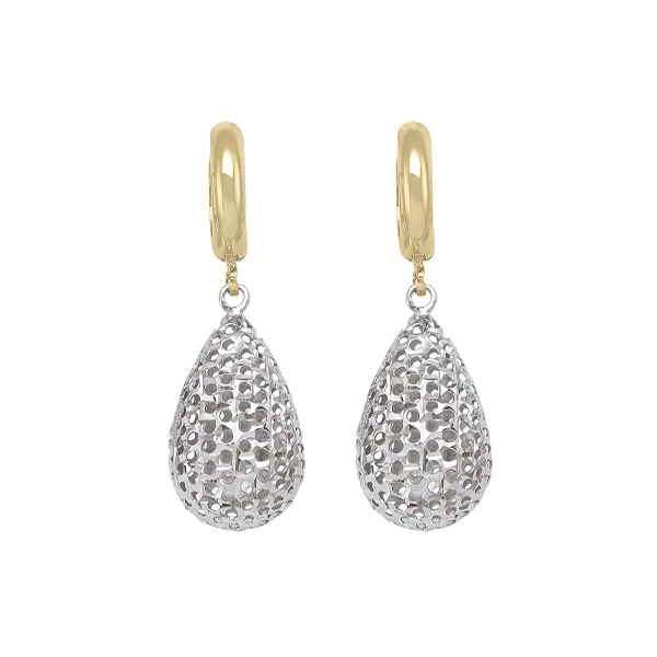 MODEL: ETECA129-10K2T10K Gold and silver fashion drop earrings. Approximate weight 2.7gm. Made in Italy. Gift box included.