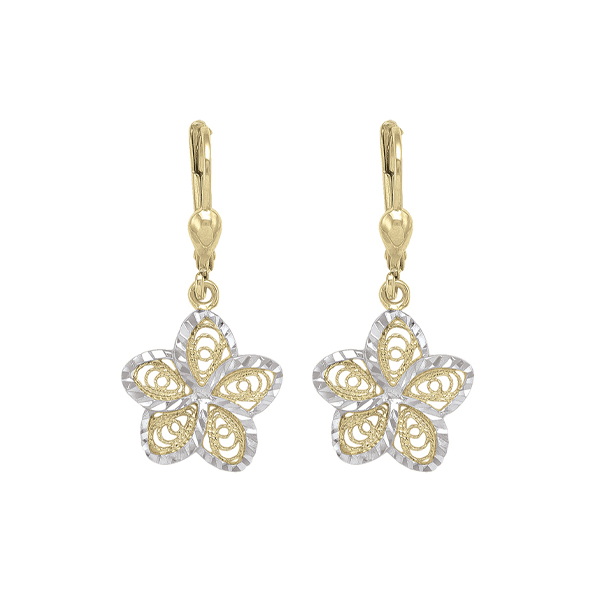 10K Gold and Silver Flower Shape Fashion Drop Earrings