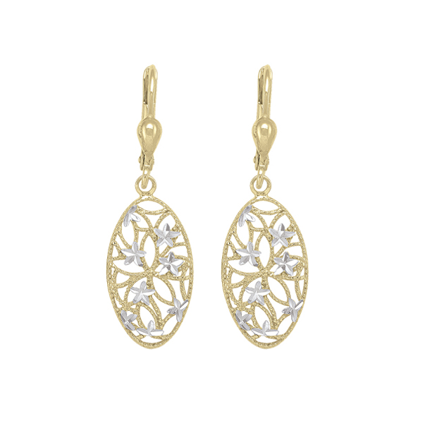 MODEL: ETECA42-10K2T10K Gold and silver oval shaped fashion drop earrings. Approximate weight 2.0gm. Made in Italy. Gift box included.