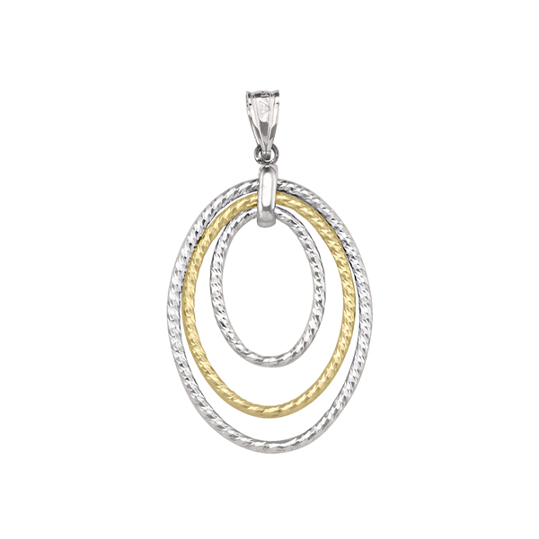 MODEL: PTECA122-10K2T10K Gold and silver three ovals pendant. Approximate weight 1.8gm. Made in Italy. Gift box included.