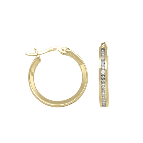 MODEL: ECZE44-10KY10K Gold cubic zirconia hoop earrings. Approximate weight 1.3gm. Made in Italy. Gift box included.
