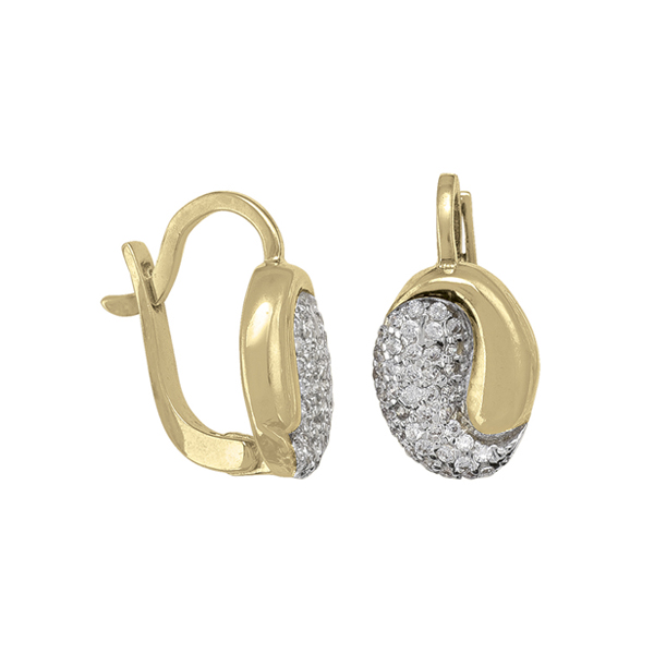 MODEL: ECZE37-10KY10K Gold cubic zirconia oval shaped fashion hoop earrings. Approximate weight 3.1gm. Made in Italy. Gift box included.