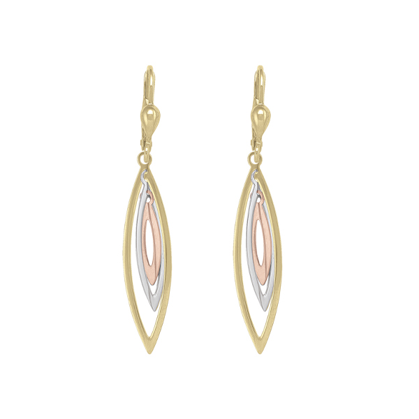 MODEL: ETECA52-10K3T10K Gold, silver and rose gold finished fashion drop earrings. Approximate weight 2.0gm. Made in Italy. Gift box included.