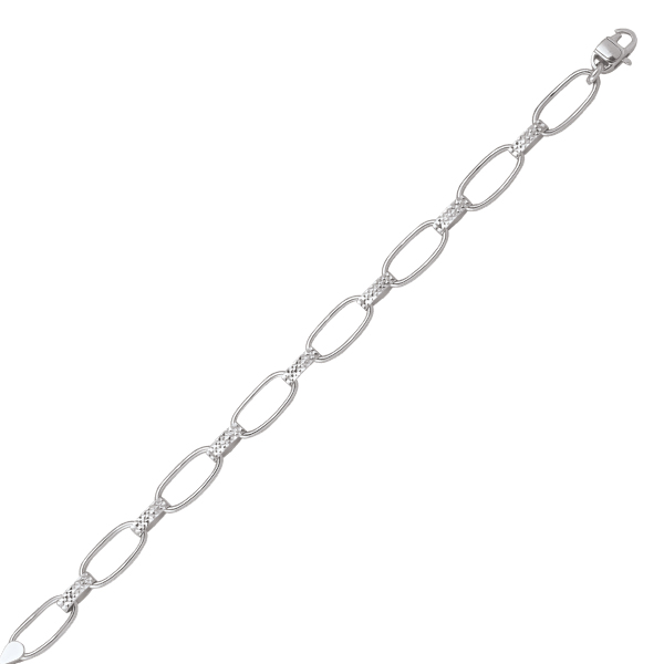 MODEL: BTECA113-10KW10K Silver finished oval shaped link bracelet. Approximate weight 5.2gm and 7.5″ in length. Gift box included.