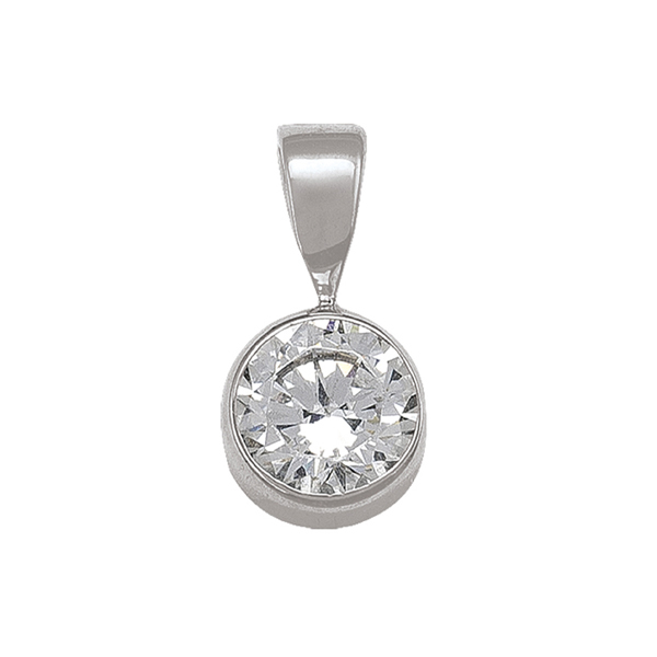 MODEL: PN4970-10KW10K Silver round cubic zirconia pendant. Approximate weight 0.8gm. Made in Italy. Gift box included.