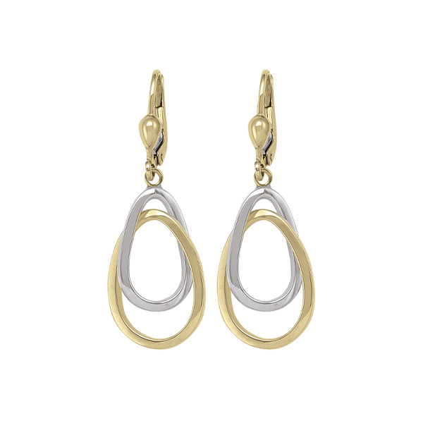 MODEL: ETA124-14K2T14K Gold and slver oval ring shaped drop earrings. Approximate weight 3.0gm. Made in Italy. Gift box included.
