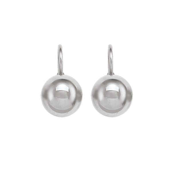 14K White sphere shaped drop earrings. Approximate weight 3.2gm. Made in Italy. Gift box included.