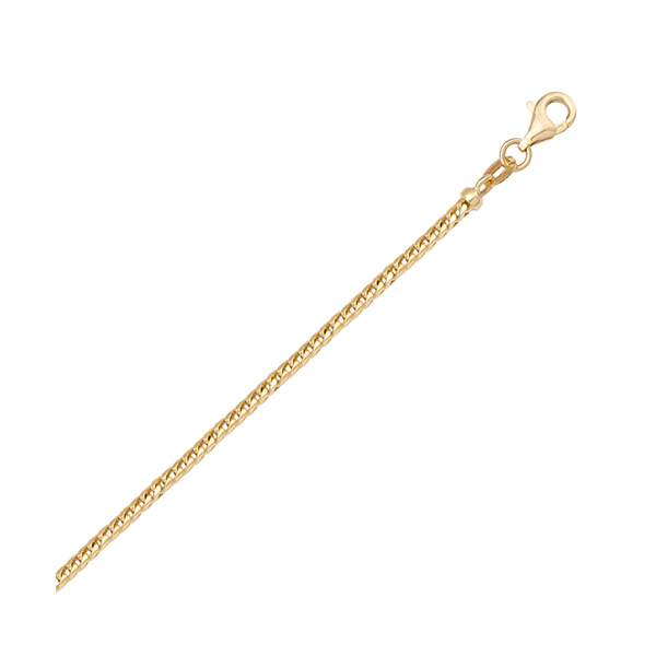 MODEL: CFR-18KY-1818K Gold franco necklace. Approximate thickness 1.0 mm, length 20″, weight 4.1 gm. Made in Italy. Gift box included.