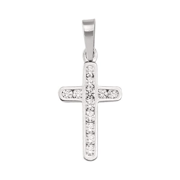 MODEL: PN1404-18KWCZ18K White Gold Cross Pendant with CZ stones. Approximate weight 1.6 gm. Gift box included.