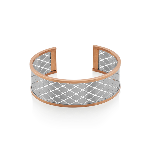 CJ Steelx Grid Cuff – Silver and Rose Gold