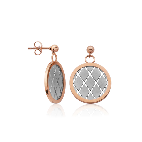 MODEL: ET2XA58-2TStainless steel IP rose grid earrings in brushed stainless steel. Gift box included.