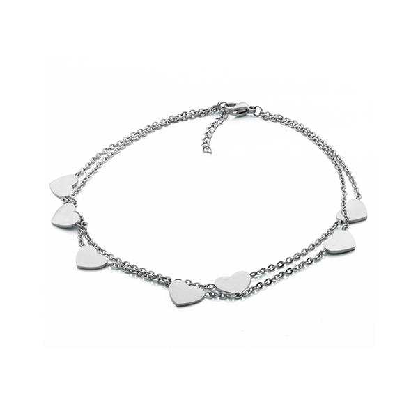 MODEL: AT1X896-WStainless Steel heart anklet double chain. 9 1″ length. Gift box included.