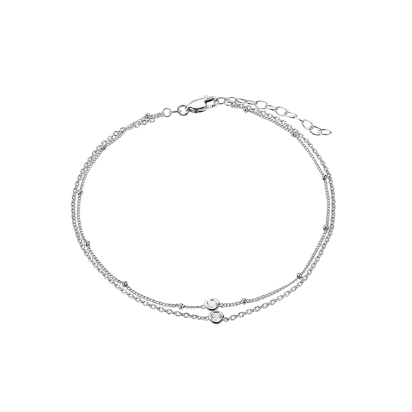 Diamondlite Cubic Zirconia Round Bezel Double Chain Anklet – Silver