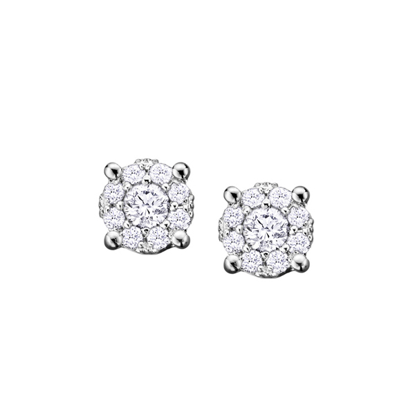 * White Gold stud Earrings * Push Back * Certificate of Diamond Authenticity available Stone Type: Diamond Stone Shape: Round Total Carat Weight: 0.08 CT. T.W. Diamond Colour: H-J Diamond Clarity: I1-I3 Stone Setting: Prong Material: 10K White Gold