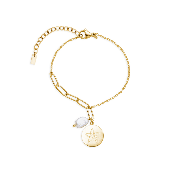 CJ Steelx Fresh Water Pearl and Flower Disc Charm Bracelet – Gold