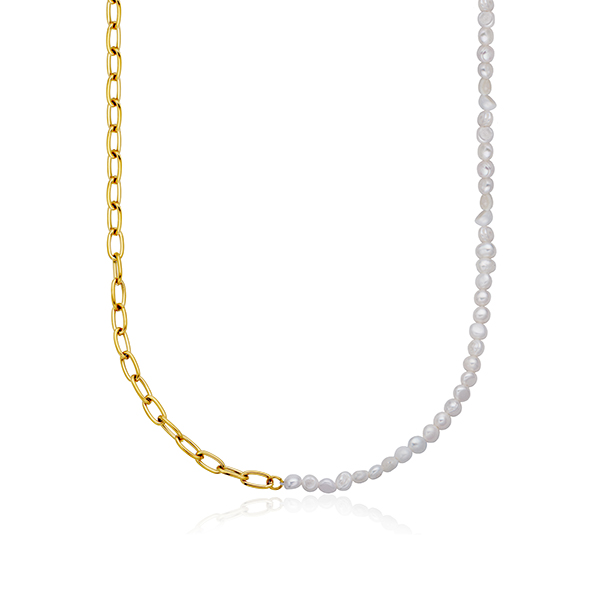 MODEL: NT0XG13-YStainless steel freshwater pearl and link chain necklace. Length 18″. Gift box included.