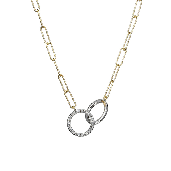Charles Garnier Sterling Silver “PAPERCLIP” with Diamondlite Interlocking Circles Necklace – Silver and Gold
