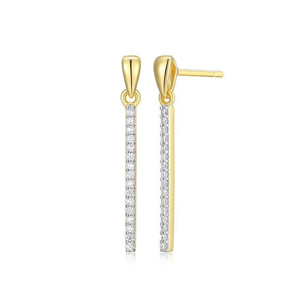 MODEL: ES2AUU6-YCJ Monte sterling silver lab_created diamond 18K gold_ plated and rhodium_ plated long bar drop earrings. 1/10 CT. T.W. Gift box included.