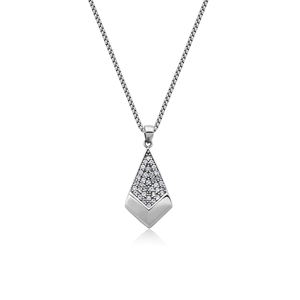 MODEL: NT3XC13-WDiamond shape stainless steel necklace with cubic zirconia. 18″ 2″ length. Gift box included.