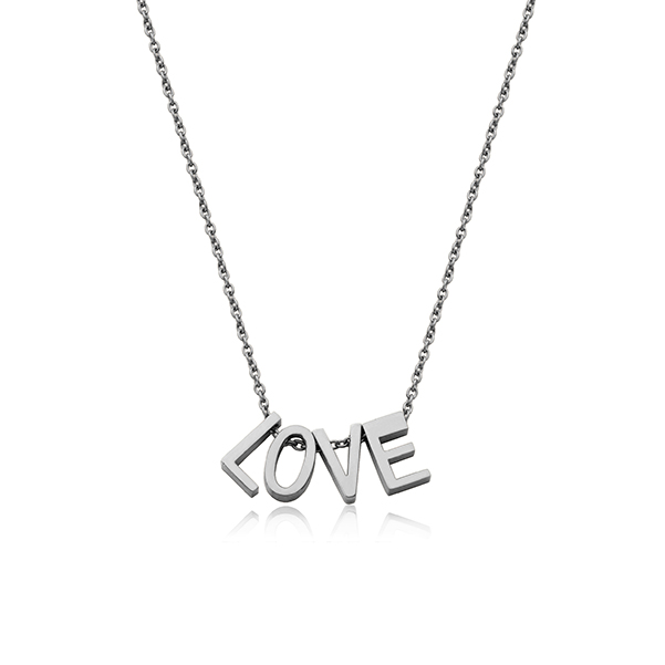 MODEL: NT0XC47-W“L-O-V-E” stainleass steel necklace. 15″ 2″ length. Gift box included.