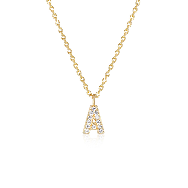 MODEL: N30A97A-YDiamondlite cubic zirconia mini initial A necklace in sterling silver with 18K gold plating. 18″ length. Gift box included.