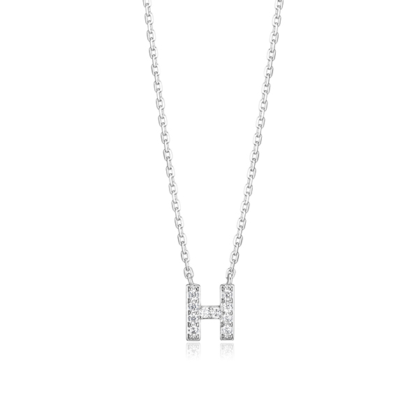 MODEL: BR0A95J-WDiamondlite cubic zirconia mini initial H necklace in sterling silver. 18″ length. Gift box included.
