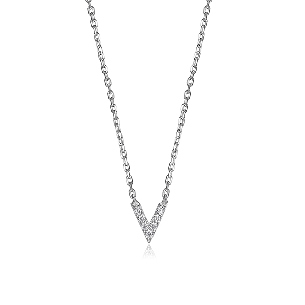 MODEL: BR0A95S-WDiamondlite cubic zirconia mini initial V necklace in sterling silver. 18″ length. Gift box included.