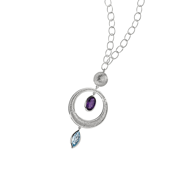 ELLE Ambrosia Sky Blue Topaz and African Amethyst Circle Pendant Necklace – Silver