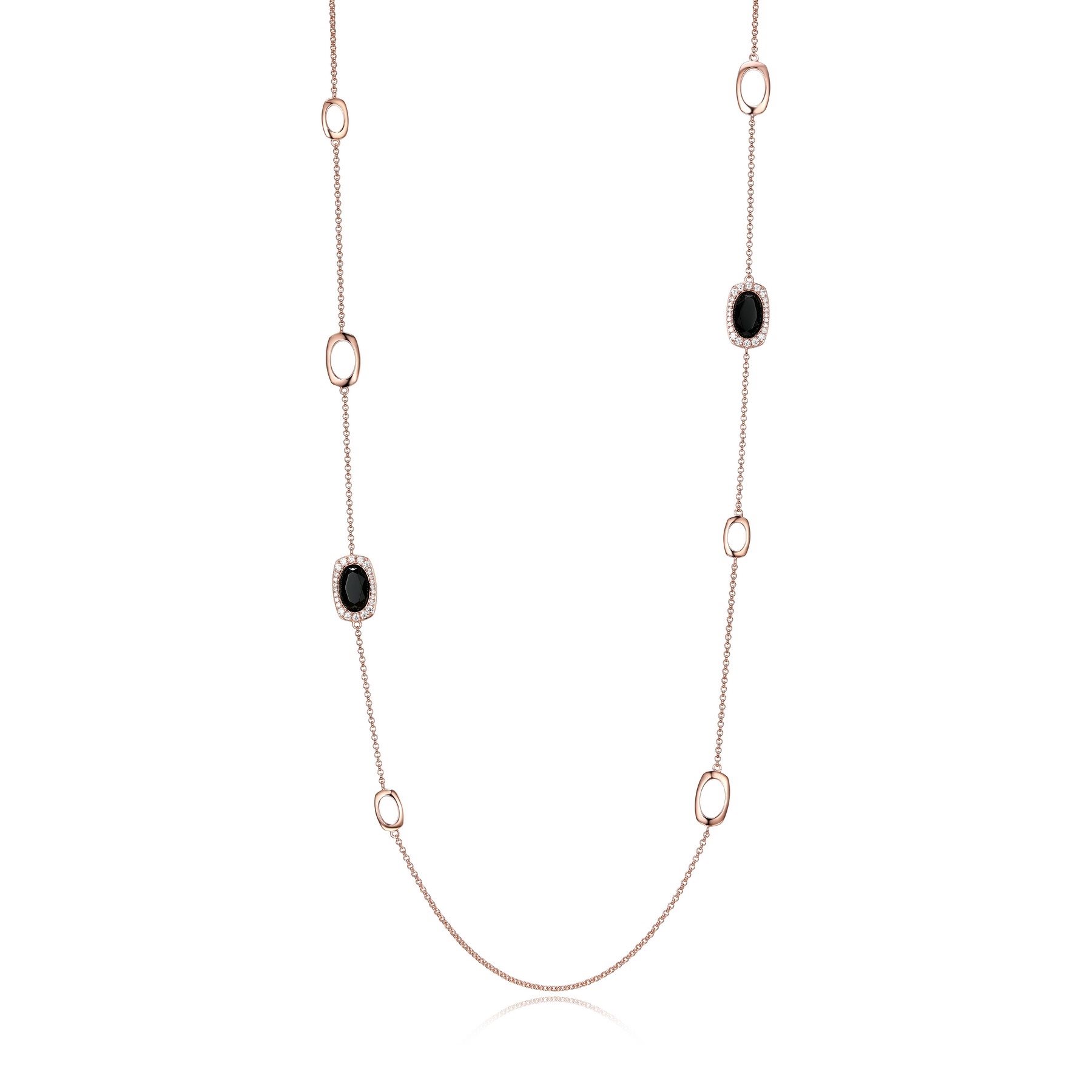 Product Name: ELLE Aureole Agate & CZ Radiance Necklace Product Type: Necklace Materials: Sterling Silver, Black Agate, Cubic Zirconia Size: 36 inch Color: Black, Rose Gold