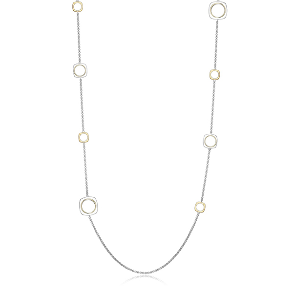 ELLE “Aureole” Sterling Silver 2-Tone Open Square Link Station Long Necklace – Silver and Gold