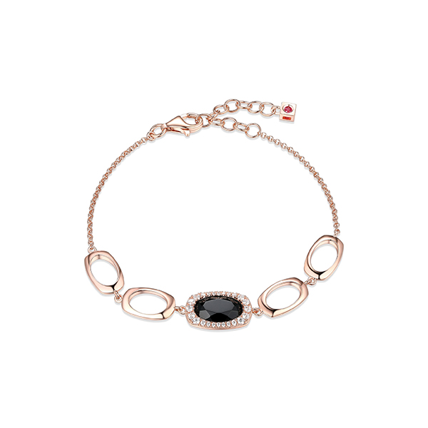 ELLE “Aureole” Sterling Silver Black Agate Oval & Cubic Zirconia with Link Bracelet – Rose Gold