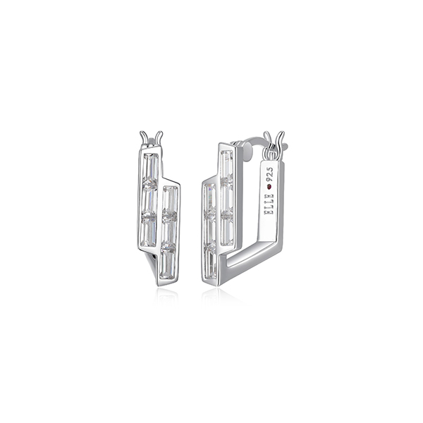 ELLE “Baguette” Straight Baguette Cubic Zirconia Bypass Off Square Hoop Earrings – Silver