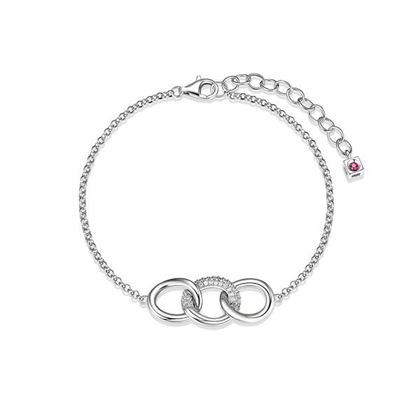 MODEL: BR1LAKQ-WELLE “Caramel” rhodium plated sterling silver interlocking oval link (27x11mm) and pave cubic zirconia bracelet. Length 6.5″ 1.5″. Gift box included.