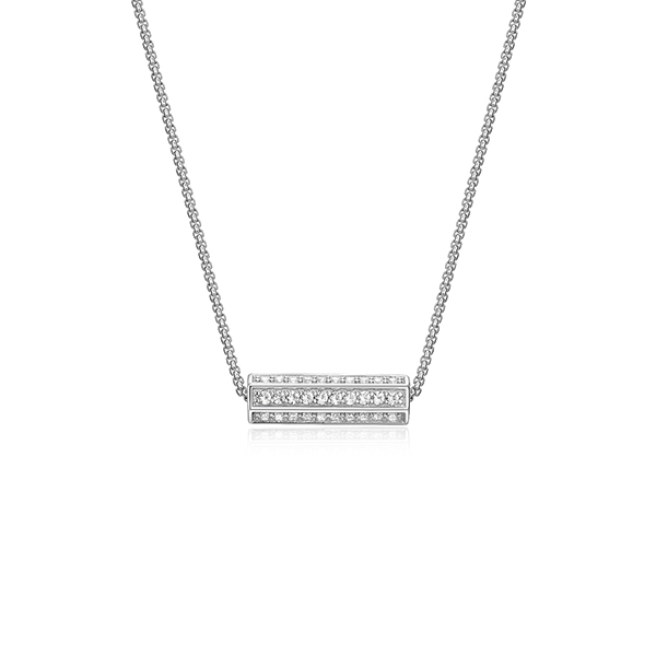 ELLE “Cheer” Created White Sapphire Hexagon Pillar Pendant Necklace – Silver