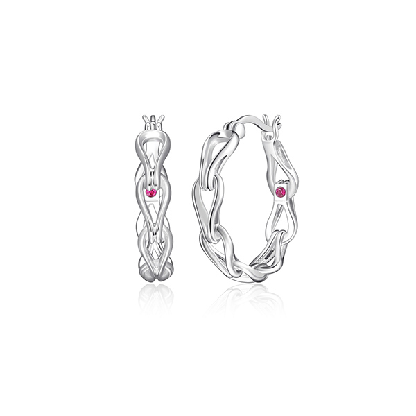 MODEL: ER2LCH8-WNew ELLE “Coalesce” rhodium plated sterling silver link 25mm hoop earrings with clip top closure. Gift box included.