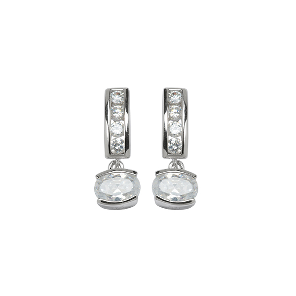 MODEL: E62L143-WELLE “Core Essentials ” rhodium plated sterling silver oval drop cubic zirconia earrings. Stone size: 7×5(mm). Gift box included.
