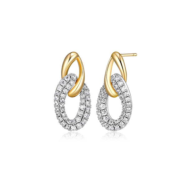 ELLE “Ebullience” Twisted Oval Link with Cubic Zirconia Stud Earrings – Silver and Gold