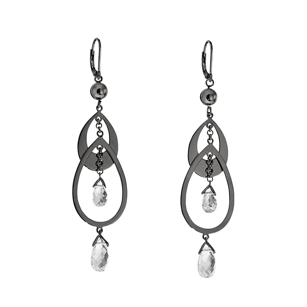 Product Name: ELLE Elusive Allure Clear Crystal Drop Lever Back Earrings Product Type: Drop Leverback Earrings Materials: Sterling Silver Clear Crystal Color: Gunmetal