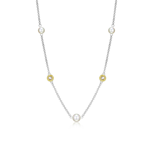 Materials : Sterling Silver, Pearl and Cubic Zirconia Color : Silver and Gold Length : 15"+3"