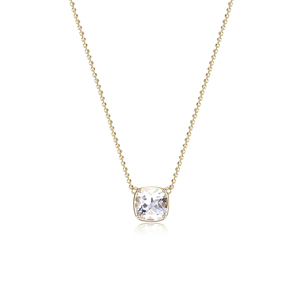 MODEL: N30LBS3-YELLE “Marble” 8mm clear quartz cushion cut gold plated sterling silver necklace. Length 17″+ 3″. Gift box included.