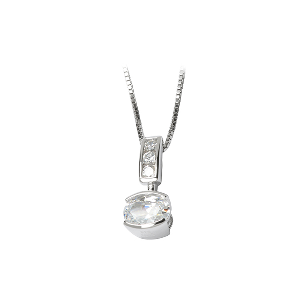 MODEL: N63L080-WFeel elegant and confident every day with the ELLE Oval Cubic Zirconia Drop Pendant, featuring a stunning 7x5mm oval stone, all crafted from brilliant sterling silver and plated with rhodium for lasting shine. This necklace offers the luxurious look of a diamond without the high price, making it perfect for both special occasions and your daily style. Elevate your wardrobe effortlessly and enjoy compliments, knowing you have made a smart, stylish choice.