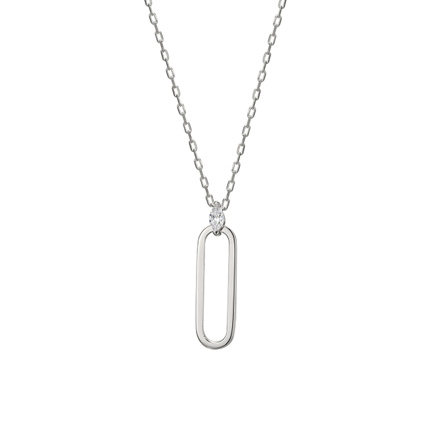 ELLE “Parallel” Open Oblong with Marquise Cubic Zirconia Necklace – Silver