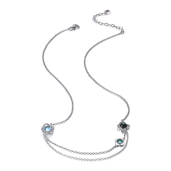 ELLE Romance Multi-Gem Double Strand Necklace – Silver