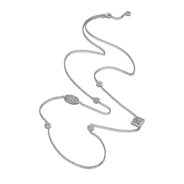Product Name: ELLE Secret Garden Oval and Diamond Detail Station Necklace Product Type: Station Necklace Size: 36 inches with 2 inch extender Material: Sterling Silver Color: Silver