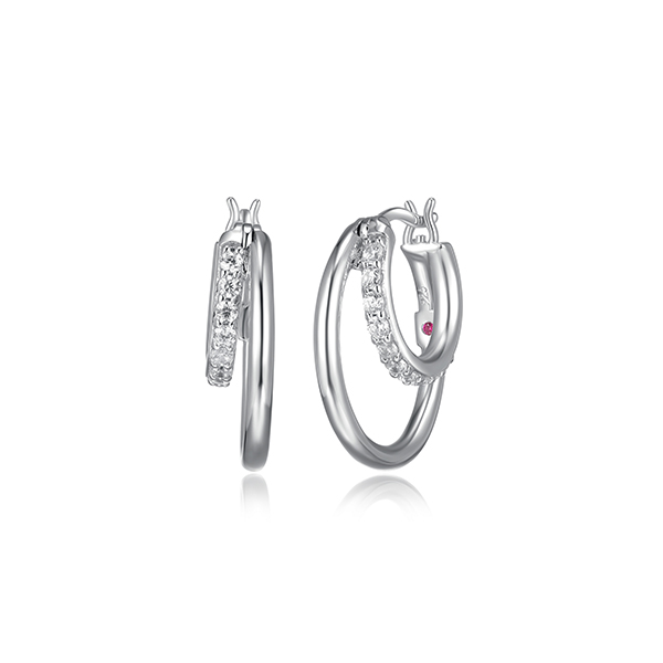 MODEL: ER2LCNY-WELLE “Simpatico” rhodium plated sterling silver 20mm double layer hoop earrings with cubic zirconia. Gift box included.