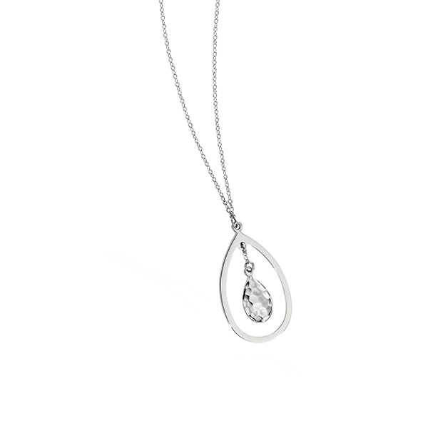 ELLE Sleek Hammered Double Teardrop Necklace – Silver