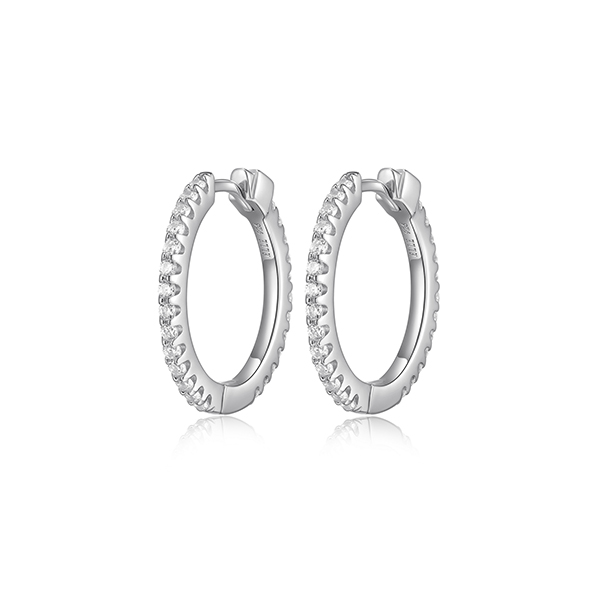 MODEL: ER2LCMD-WELLE “Stardust” rhodium plated sterling silver 20mm hoop earrings with clear cubic zirconia and snape in closure. Gift box included.