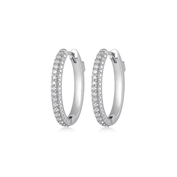 MODEL: ER2LCLT-WELLE “Stardust” rhodium plated sterling silver 20x15mm oval hoop earrings with 3-row clear cubic zirconia and snape in closure. Gift box included.